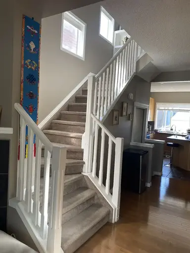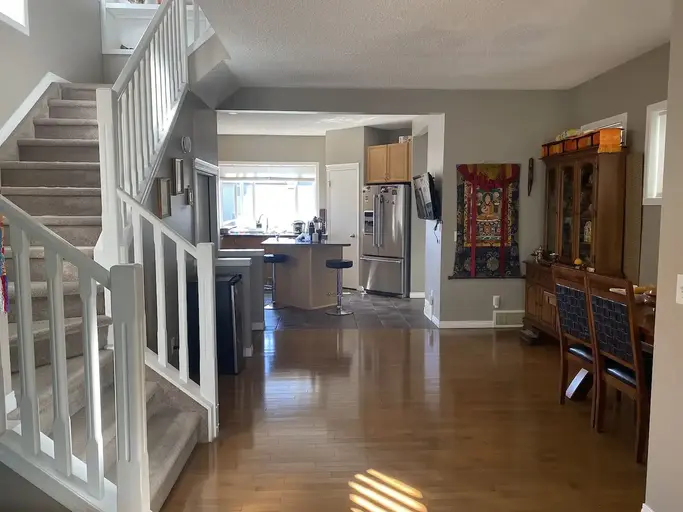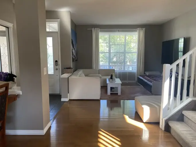 This house consists of legal basement suite with separate entrance. Nothing to share with him.1 An ensuite master bedroom and two other bedrooms with shared bathroom on the upper floor2 High ceiling 9" living room, dining space and big kitchen with walk-in pantry and island3 in-suite laundry on the main floor4 Front Porch and backyard space5 Brand new furnace and water tank6 Free internets
