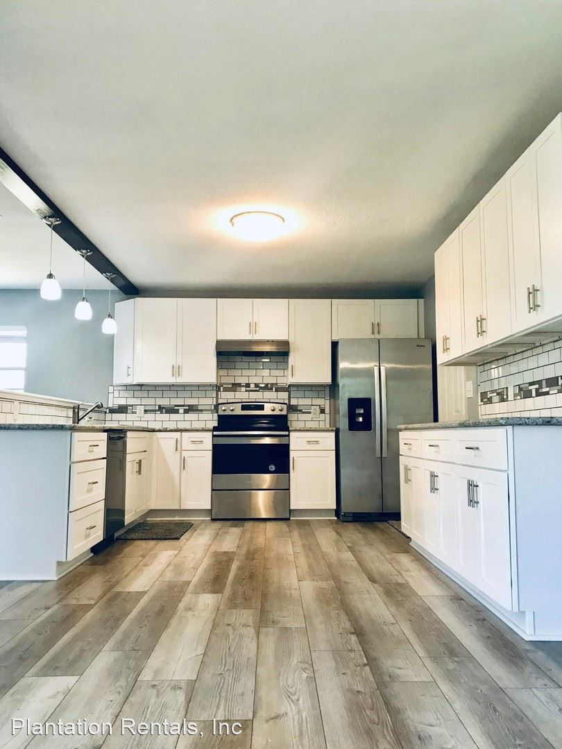 Spacious 2 bedroom, 2 bath, 1 car garage house. - Spacious, unfurnished single family home. Large backyard with mature trees. Updated, brightly lit kitchen with stainless appliances, and updated main bathroom. Nice clean floors and trending paint colors. Tiled Florida room, 1 car garage. Second bathroom and laundry hook-ups are located in the garage. Requirements: First, last and security required. All applicants must be 18 or over, and be able to pass a background check and credit check. $50 application fee per adult. Please complete your rental applications at plantationrentals.com. Showings will be scheduled Monday-Friday between 10 AM and 4 PM after your application has been reviewed.